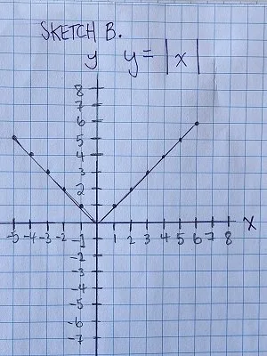 There are other functions that have a similar range of y values. For example, the absolute-value function always returns a positive y-value (see Sketch B.).