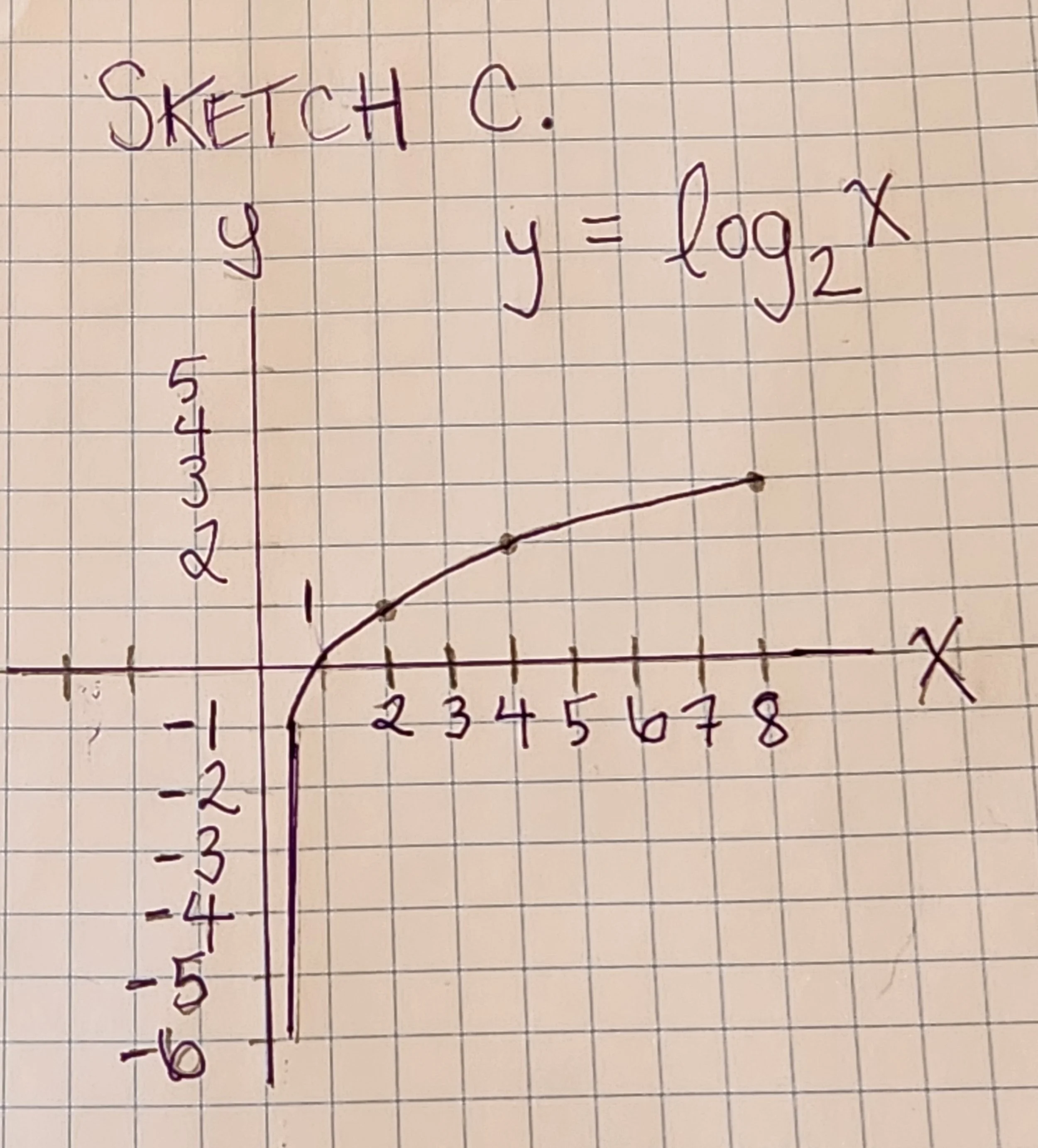 You might think that this logarithmic function resembles our square function in Sketch A. Be careful not to confuse a base number with its exponent.